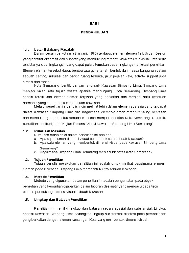 spasial Kawasan Simpang Lima sedangkan lingkup substansial dibatasi pada pembahasan
