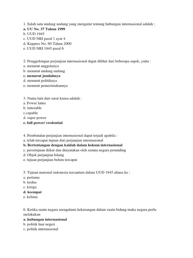 Salah satu undang undang yang mengatur tentang hubungan internasional adalah :