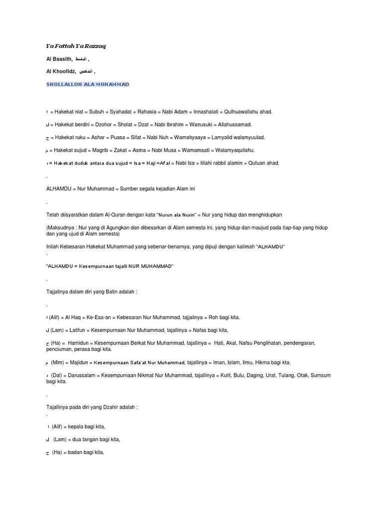 ALHAMDU = Alhayyaatu Muhammadu = kesempurnaan tajjalli Nur Muhammad.