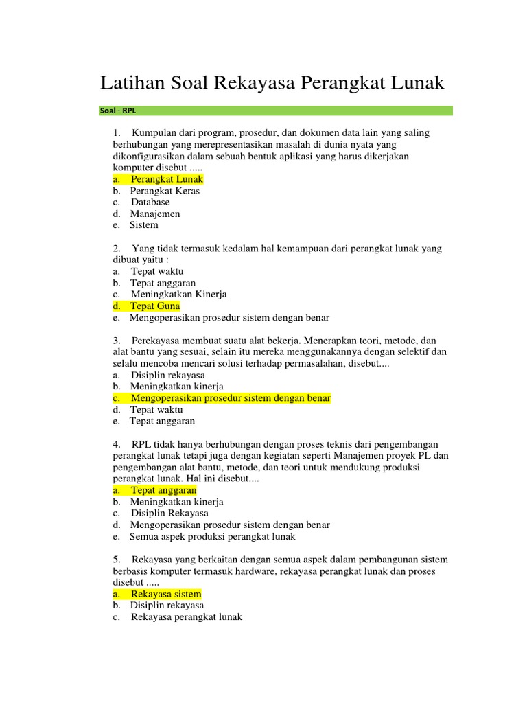 Latihan Soal Rekayasa Perangkat Lunak