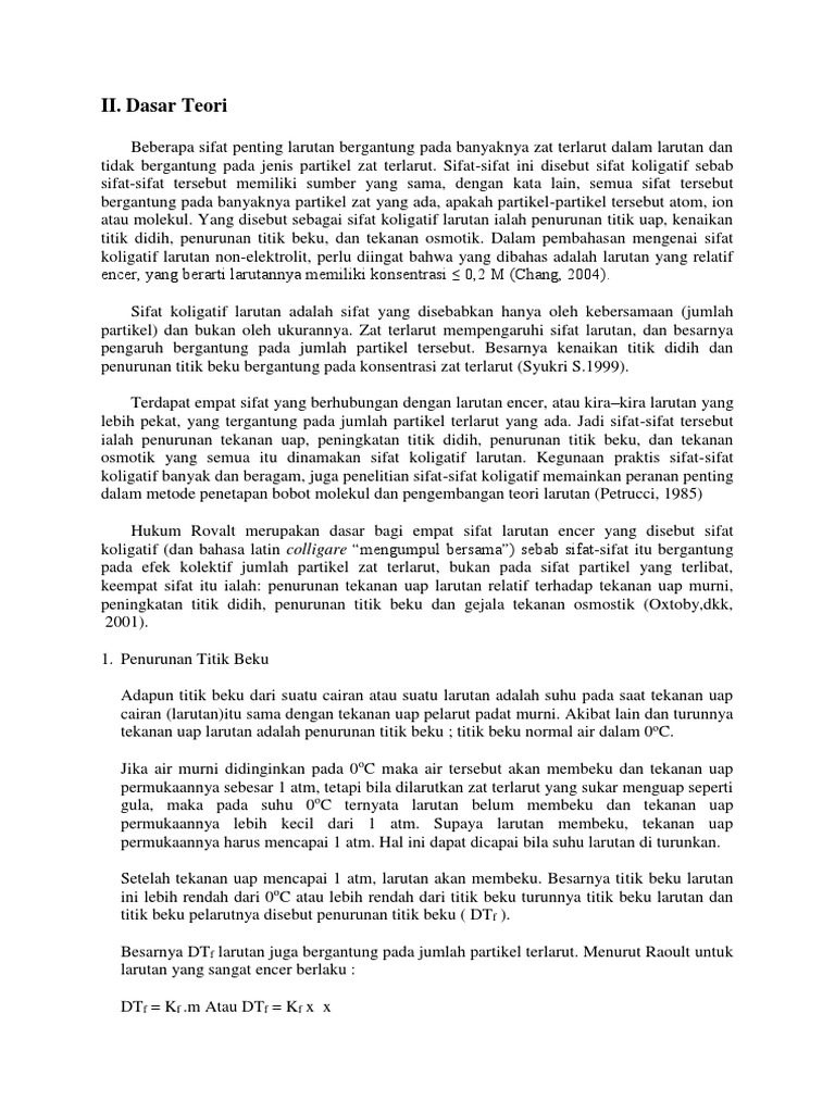 titik didih, penurunan titik beku, dan tekanan osmotik. Dalam pembahasan mengenai sifat