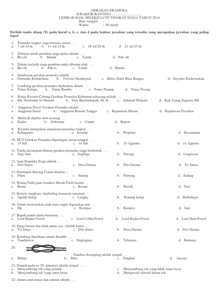 a. Pramuka Utama c. Pramuka Patama b. Pramuka Sejati d. Pramuka Besar