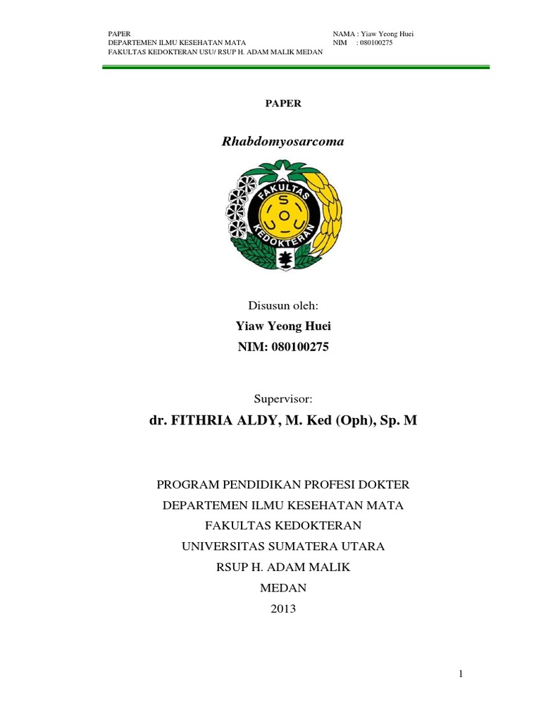 Judul makalah ini ialah mengenai “Rhabdomyosarcoma”. Adapun tujuan