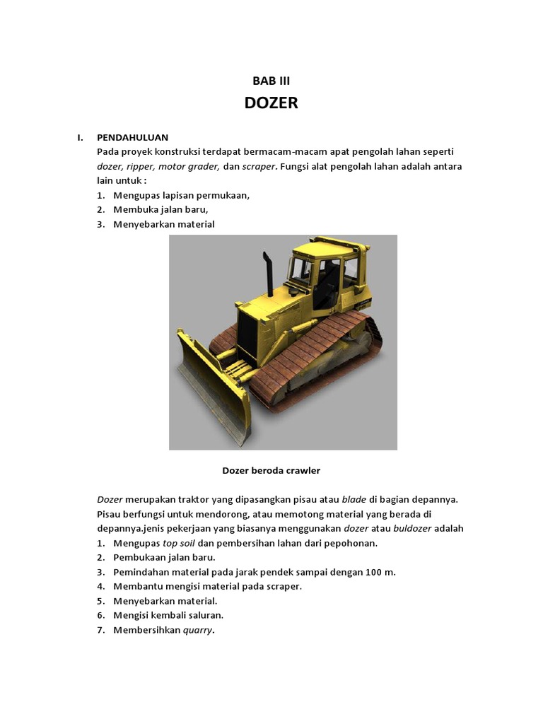 dozer, ripper, motor grader, dan scraper. Fungsi alat pengolah lahan adalah antara
