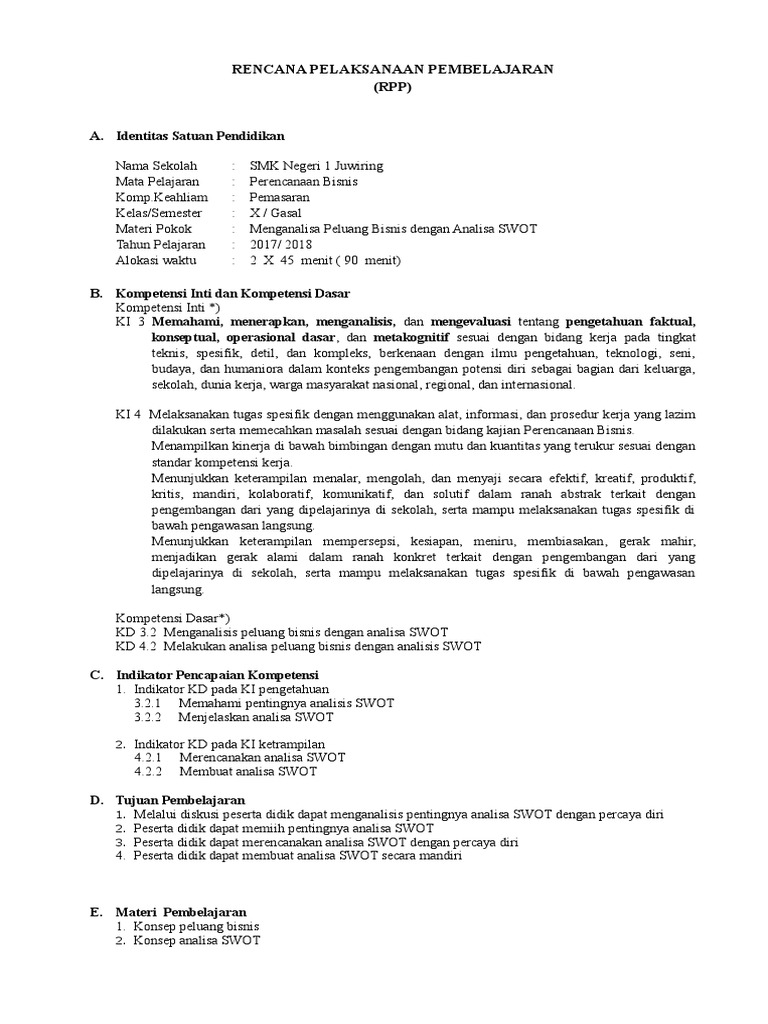 RPP Analisis SWOT untuk SMK