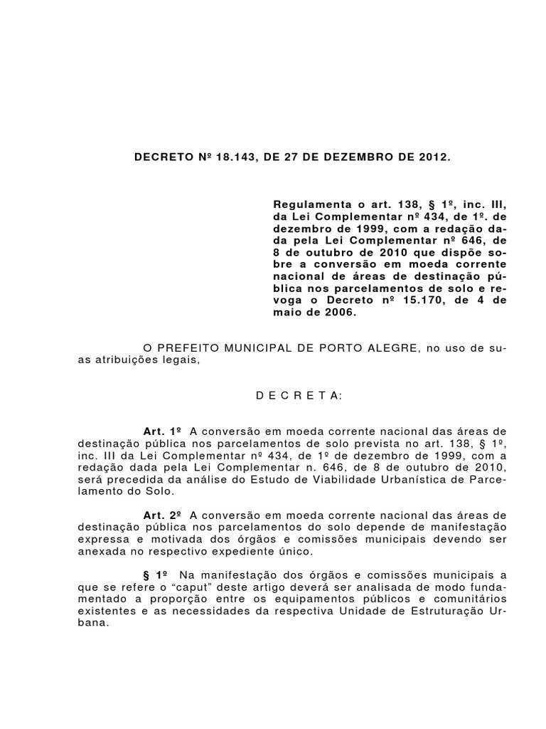 DECRETO Nº 18.143, DE 27 DE DEZEMBRO DE 2012.