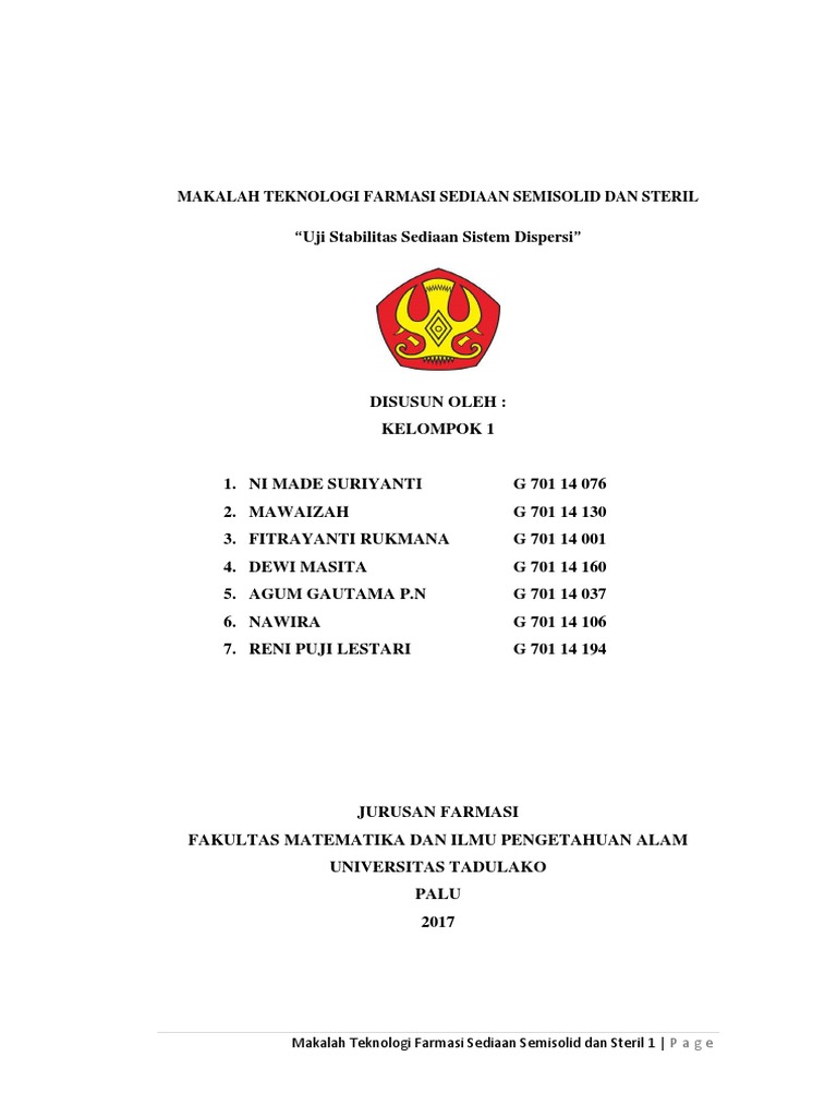 “Uji Stabilitas Sediaan Sistem Dispersi”
