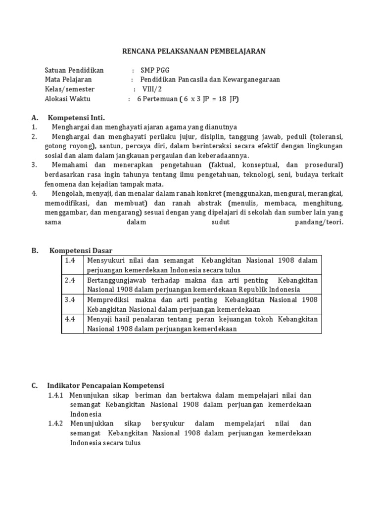 RPP PPKn Kelas VIII: Kebangkitan Nasional