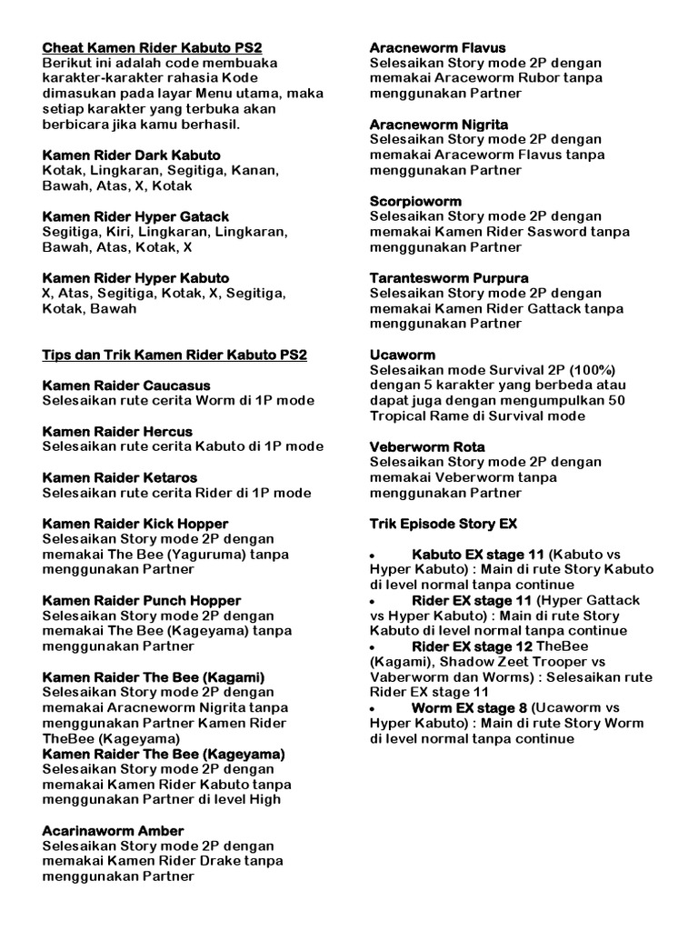 Tips dan Trik Kamen Rider Kabuto PS2 Ucaworm