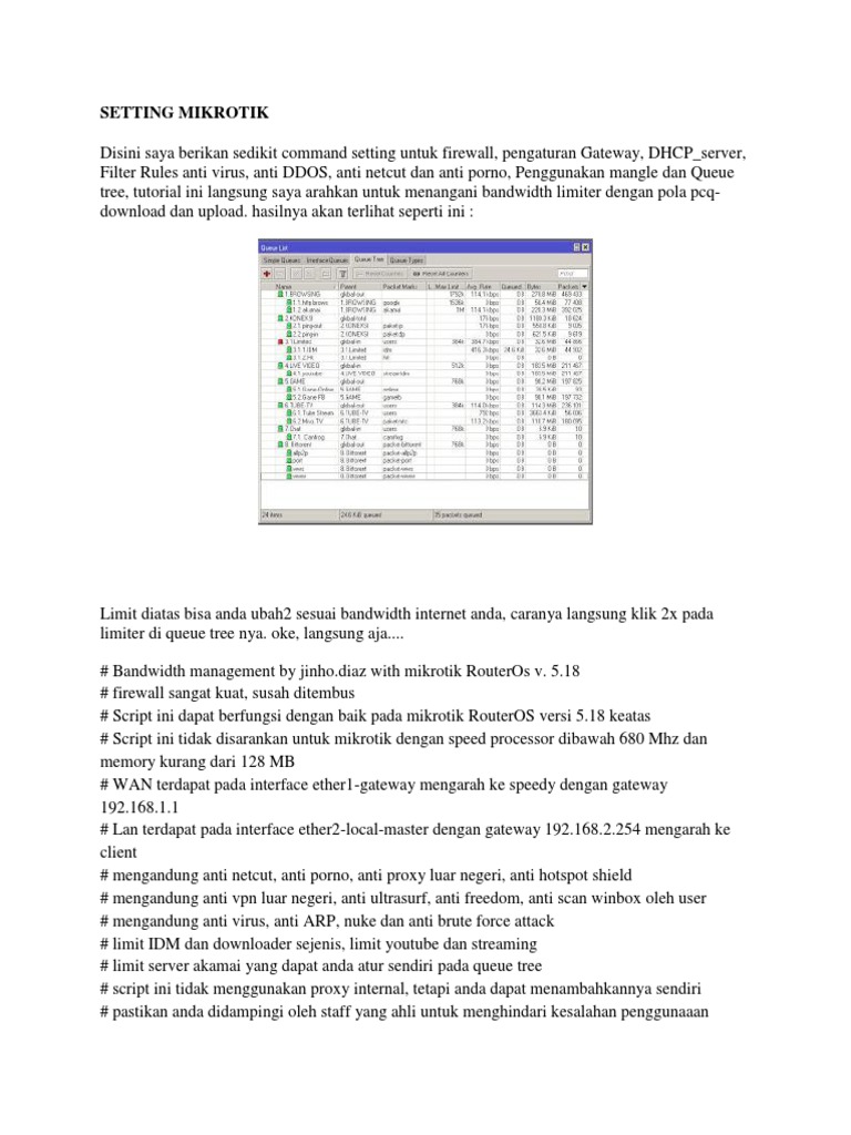 # Script ini dapat berfungsi dengan baik pada mikrotik RouterOS versi 5.18 keatas