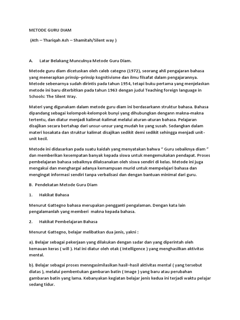 Metode guru diam dicetuskan oleh caleb categno (1972), seorang ahli pengajaran bahasa