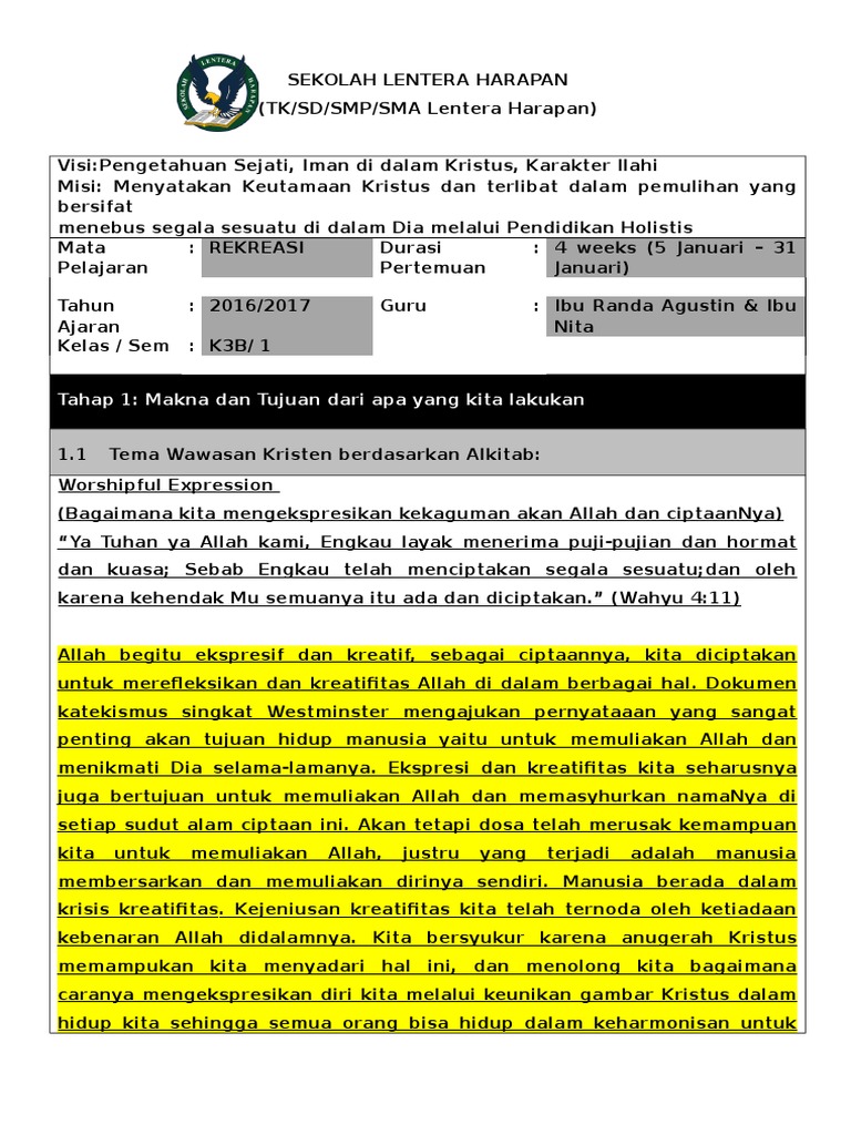 Mata : REKREASI Durasi : 4 weeks (5 Januari – 31