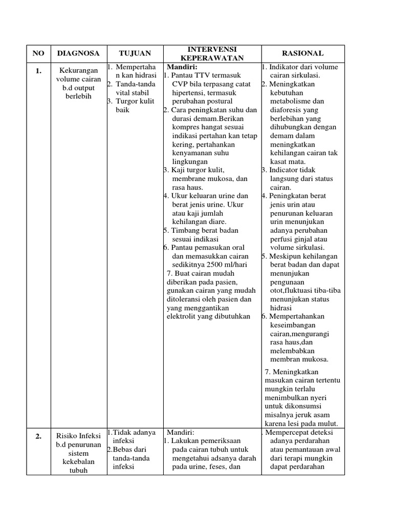 n kan hidrasi 1. Pantau TTV termasuk cairan sirkulasi.