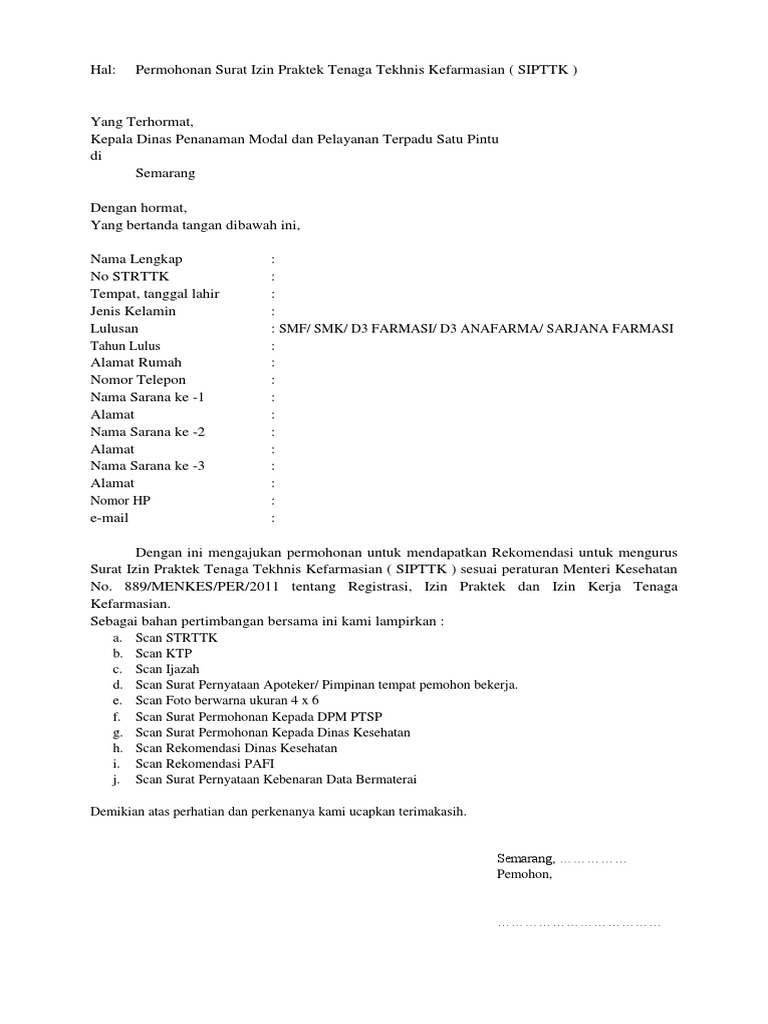 Hal: Permohonan Surat Izin Praktek Tenaga Tekhnis Kefarmasian ( SIPTTK )