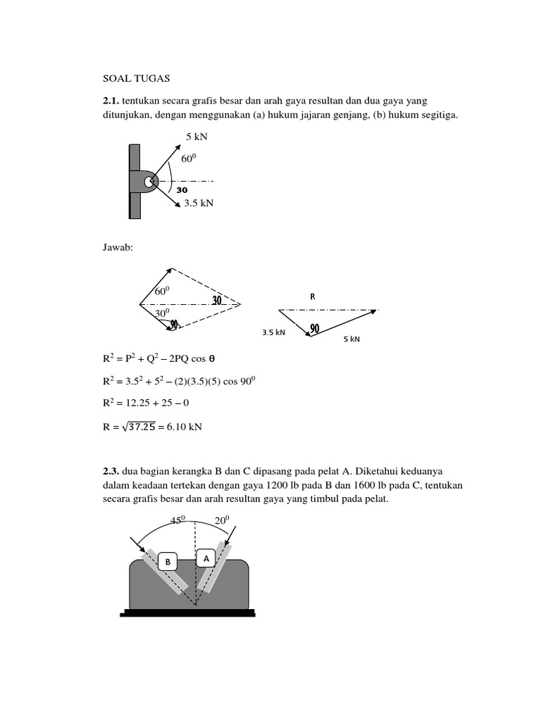 2.1. tentukan secara grafis besar dan arah gaya resultan dan dua gaya yang