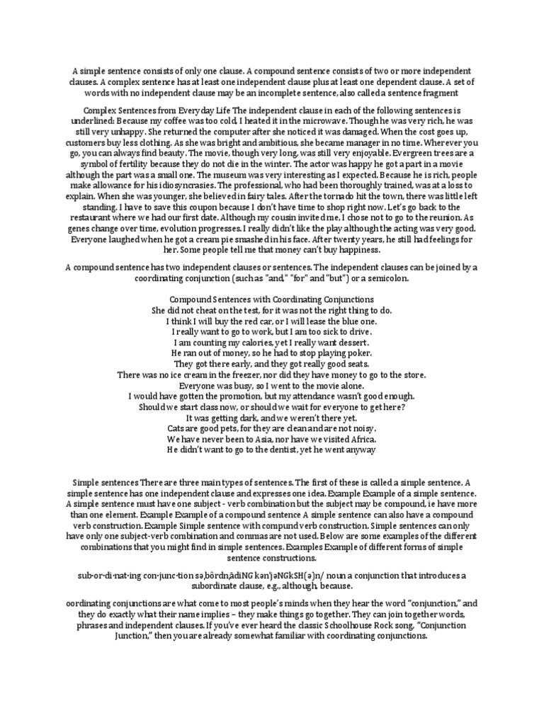 than one element. Example Example of a compound sentence A simple sentence can also have a compound