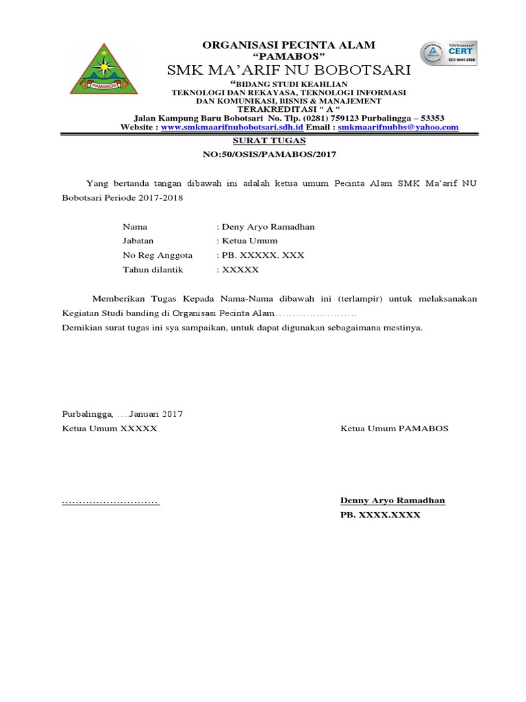 Yang bertanda tangan dibawah ini adalah ketua umum Pecinta Alam SMK Ma’arif NU