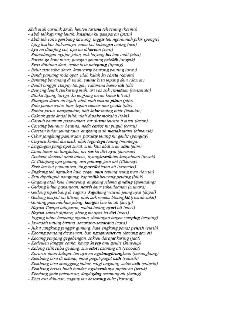 - Peso pangot ninggang lontar, acan katuliskeun diri (tulis)