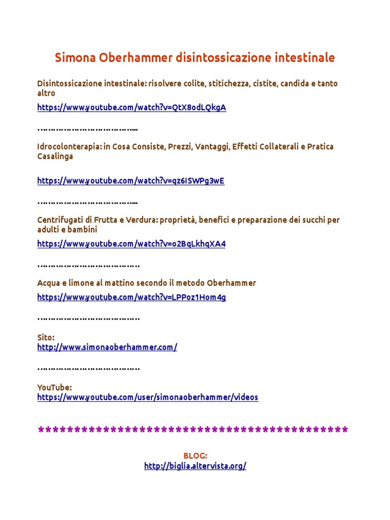Come conseguenza. Estratto del libro: Curarsi con Acqua e Limone di Simona Oberhammer Il corpo ha bisogno di essere pulito anche dentro. facendo la doccia o il bagno. nell’or- ganismo si accumulano scorie e tossine che nel tempo lo inquinano e lo affaticano. Non ci si oc- cupa con la stessa cura e attenzione della pulizia interna del corpo. periodicamente i capel- li e tutte le parti del corpo che lo richiedono. Se non ci laviamo e se non ab- biamo cura della nostra persona. dopo un certo tempo. emaniamo cattivo odore. Anche gli abiti vengono sostituiti regolarmente con quelli puliti. ci sentiamo in disordine. -3- Acquista il libro completo cliccando qui . E ora ti faccio una domanda: succede la stessa cosa per quanto riguarda l’interno del nostro corpo? Purtroppo la risposta spesso è: no. causando malattia. non solo fuori Ogni giorno ciascuno di noi si occupa della propria igiene personale. abbiamo una sensazione sgradevole e non siamo a posto. lavando i denti.
