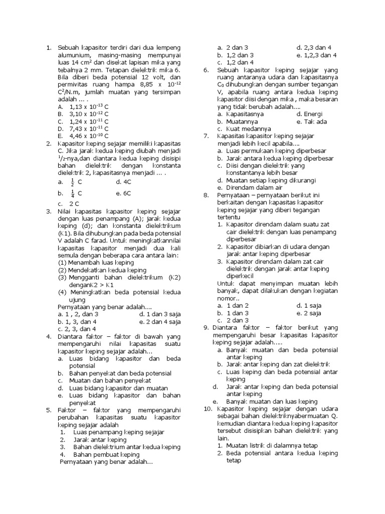 1. Sebuah kapasitor terdiri dari dua lempeng a. 2 dan 3 d.