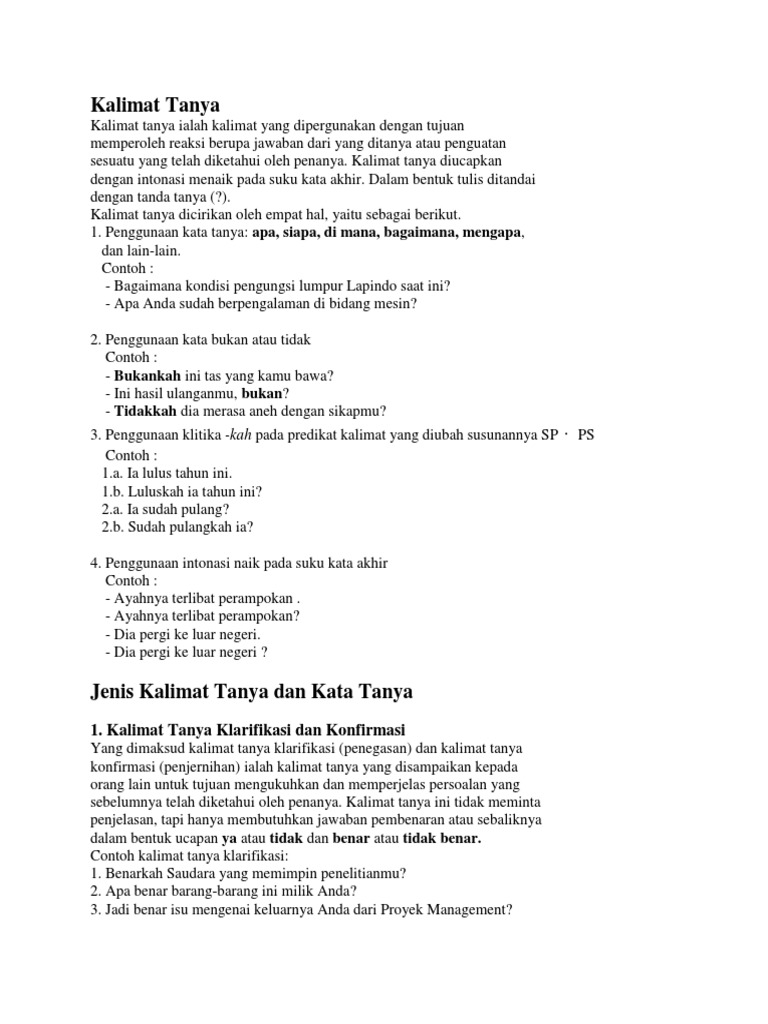 Jenis Kalimat Tanya dan Kata Tanya