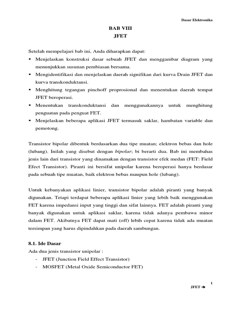 Pada bagian ini akan dibahas tentang JFET. Gambar (8.1a) menunjukkan sebuah