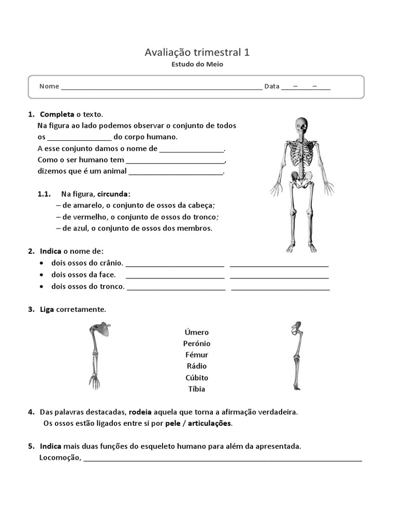 Indica corretamente mais duas funções do esqueleto humano. 2