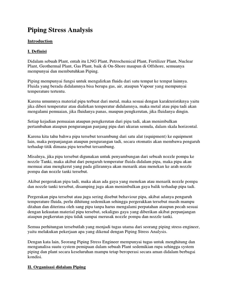 yaitu melakukan pekerjaan apa yang dikenal dengan Piping Stress Analysis.