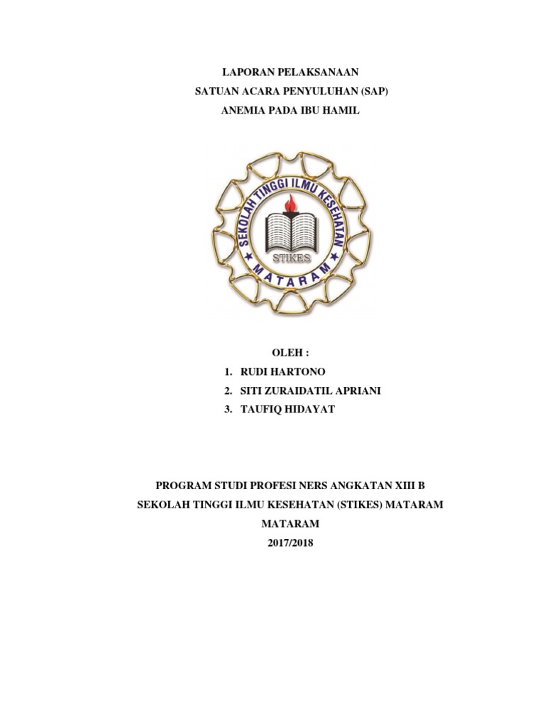 beliaulah “Satuan Acara Penyuluhan (SAP) Anemia pada Ibu Hamil” ini dapat