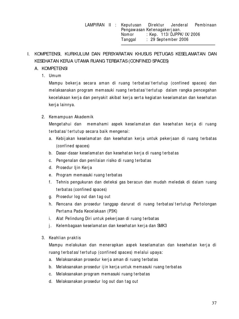 b. Dasar-dasar keselamatan dan kesehatan kerja di ruang terbatas