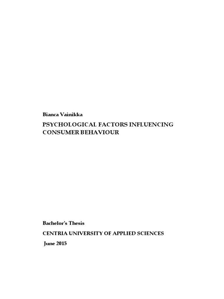 PSYCHOLOGICAL FACTORS INFLUENCING CONSUMER BEHAVIOUR