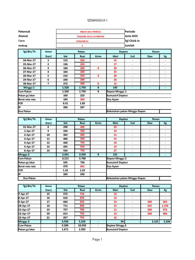 Cum Pakan 1,320 850 1,350 Depesi Minggu 1