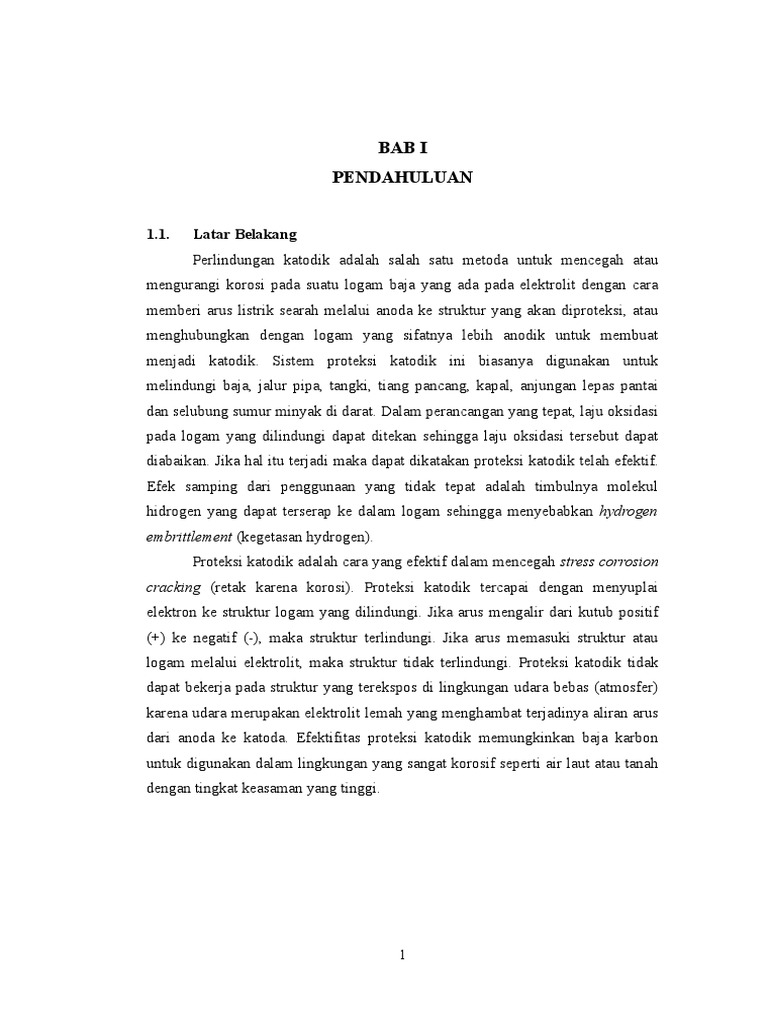 tertentu yang bervariasi guna mendapatkan anoda yang memproteksi struktur baja.