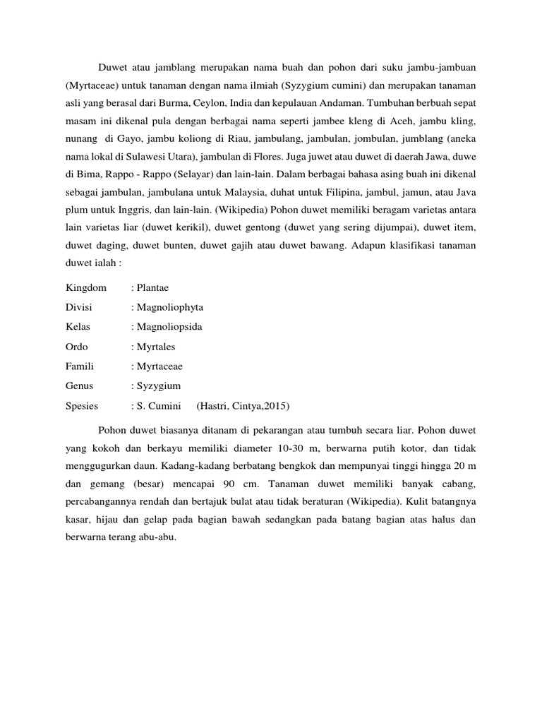 plum untuk Inggris, dan lain-lain. (Wikipedia) Pohon duwet memiliki beragam varietas antara