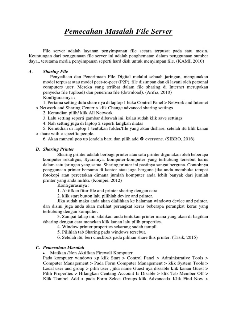 Setelah itu buka file sharing/printer sharing pada jaringan LAN pada komputer dengan