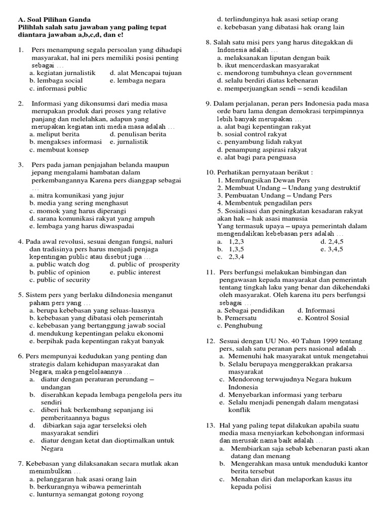 1. Pers menampung segala persoalan yang dihadapi Indonesia adalah …
