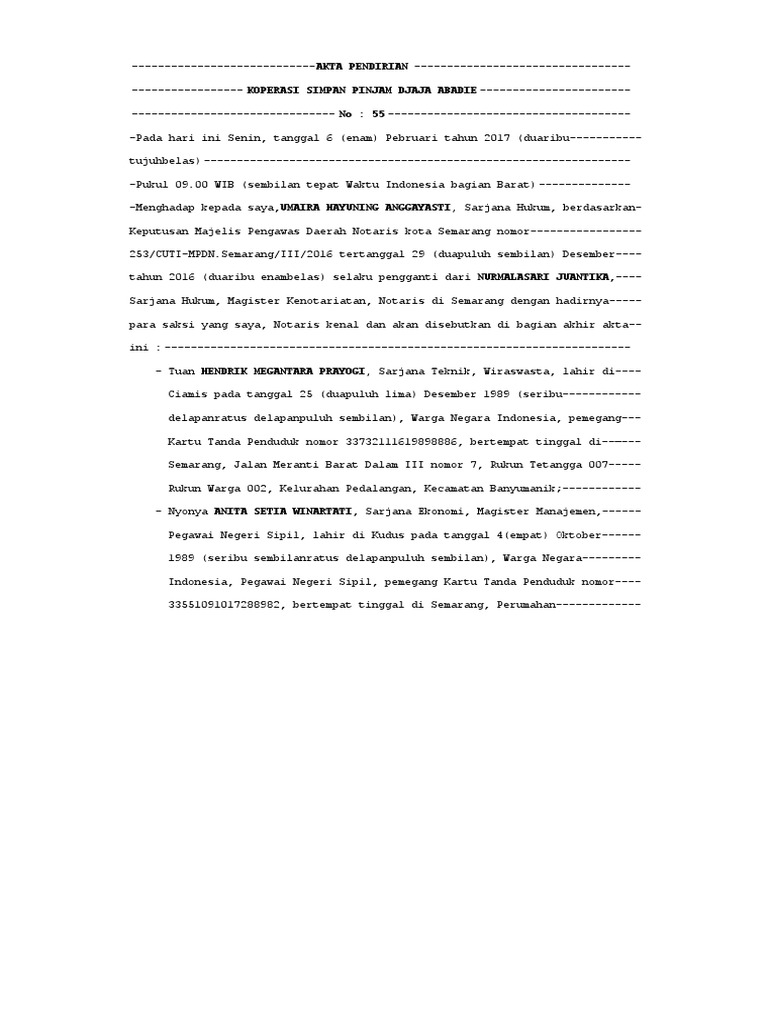 Pembentukan Koperasi SIMPAN PINJAM DJAJA ABADIE, dibuat dibawah tangan--