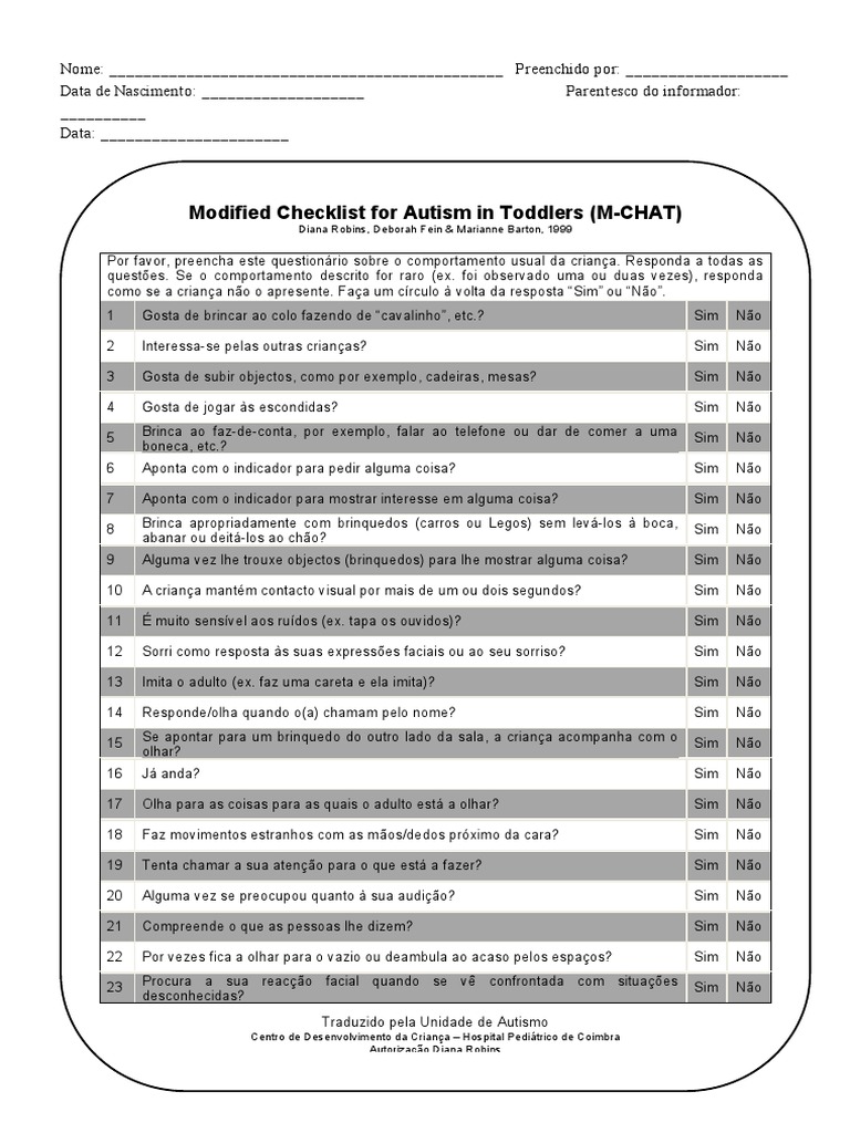 A cotação do M-CHAT leva menos de dois minutos. Resultados superiores a 3 (falha em 3 itens