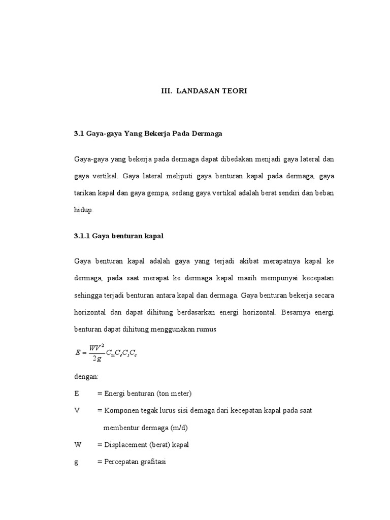 gaya vertikal. Gaya lateral meliputi gaya benturan kapal pada dermaga, gaya