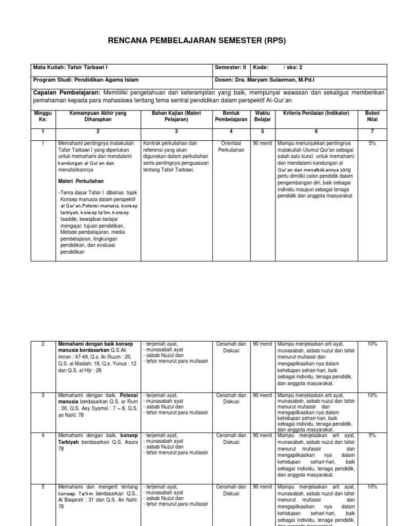 RENCANA PEMBELAJARAN SEMESTER (RPS)