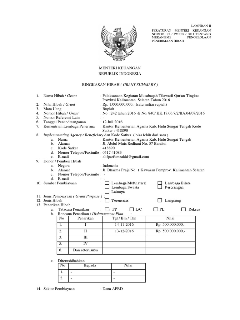 1. Nama Hibah / Grant : Pelaksanaan Kegiatan Musabaqah Tilawatil Qur'an Tingkat