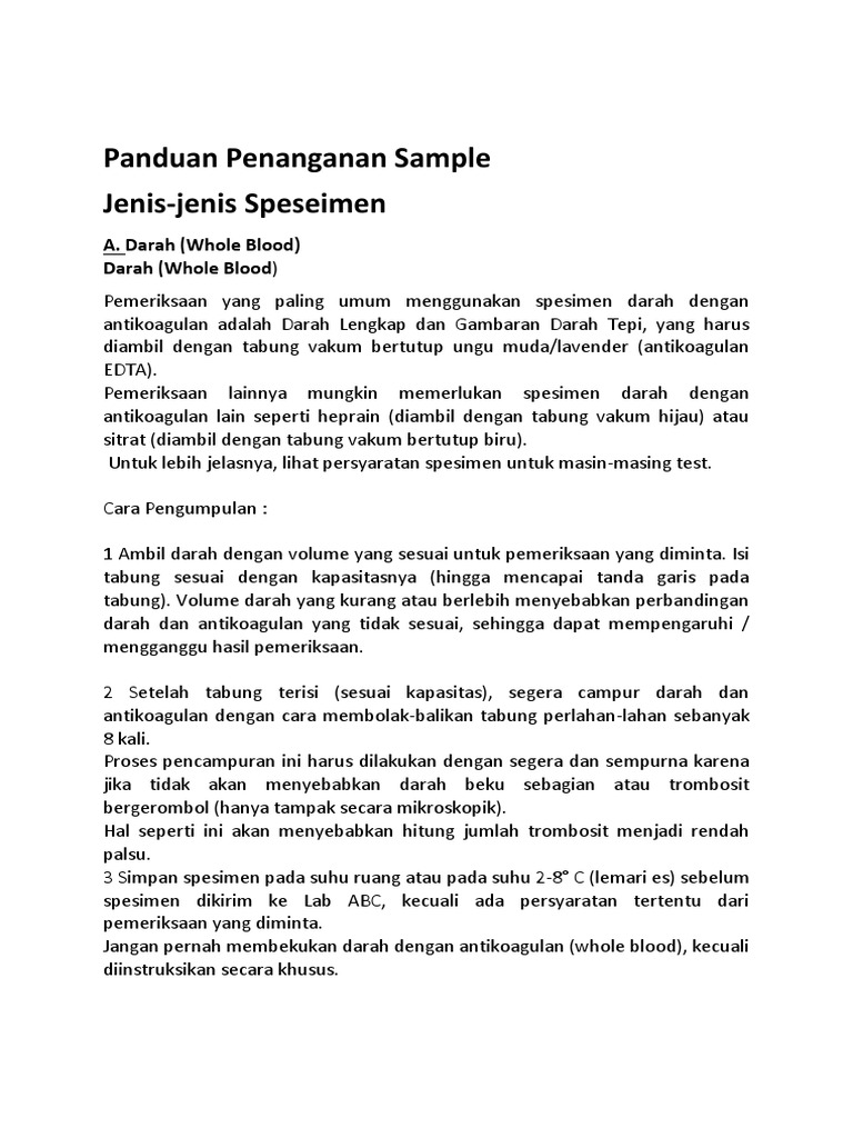 Segera kirimkan spesimen ke Lab ABC. Jika ditunda, letakan di suhu ruang