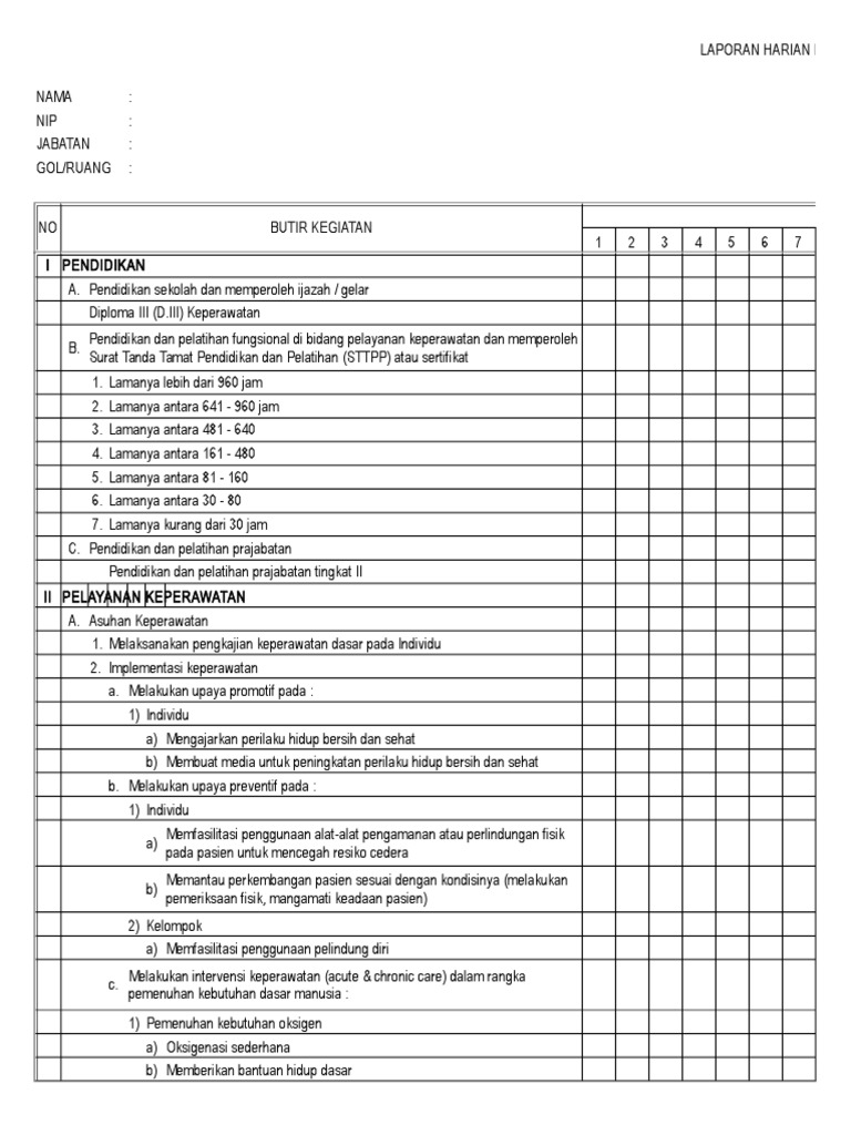 LAPORAN HARIAN KEGIATAN PELAYANAN KEPERAWATAN