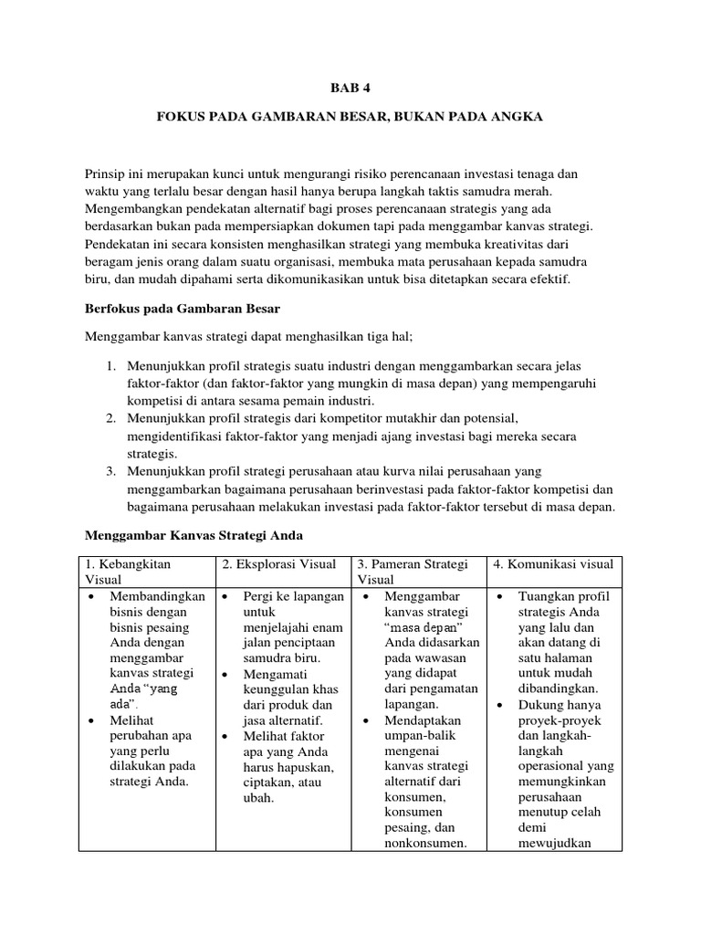 berdasarkan bukan pada mempersiapkan dokumen tapi pada menggambar kanvas strategi.