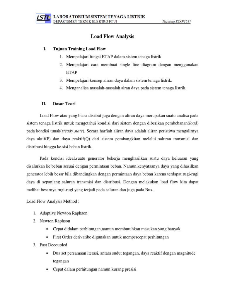 Load Flow atau yang biasa disebut juga dengan aliran daya merupakan suatu analisa pada
