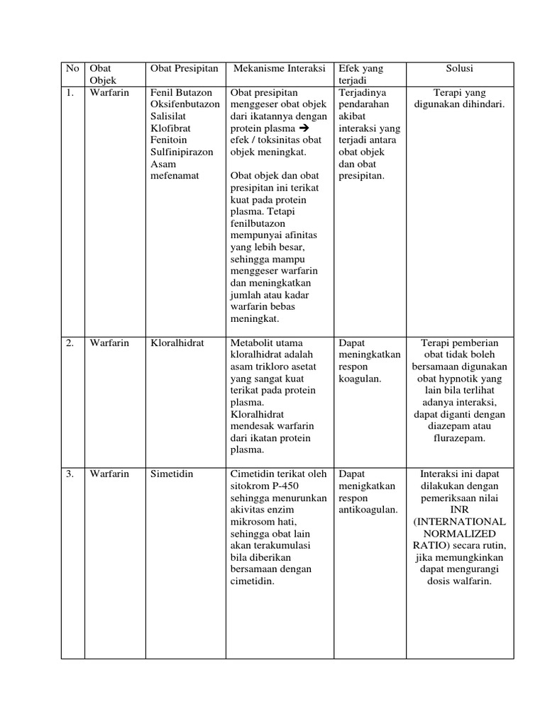 1. Warfarin Fenil Butazon Obat presipitan Terjadinya Terapi yang