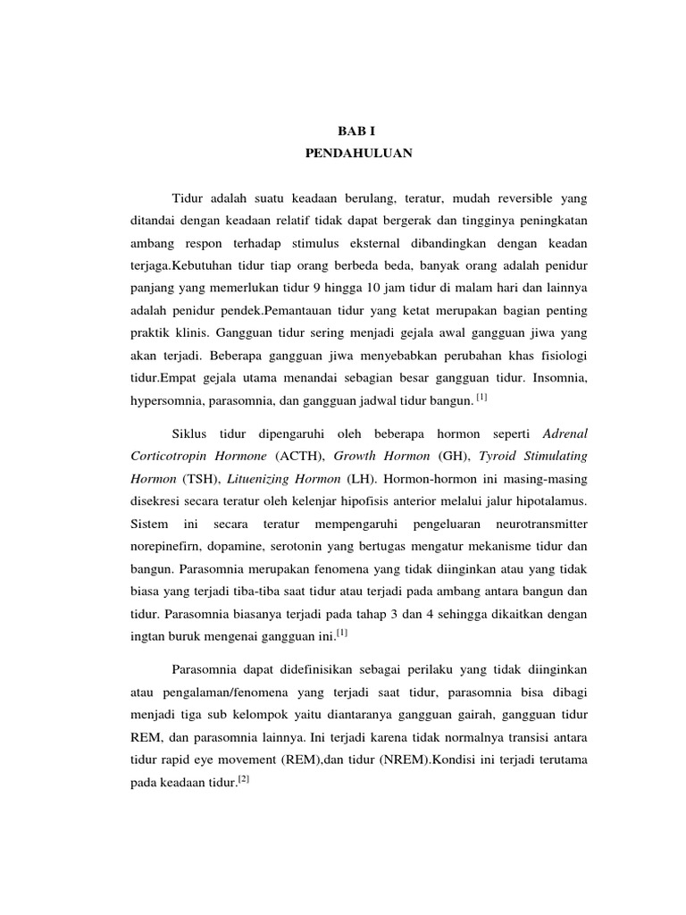 Parasomnia dapat didefinisikan sebagai perilaku yang tidak diinginkan