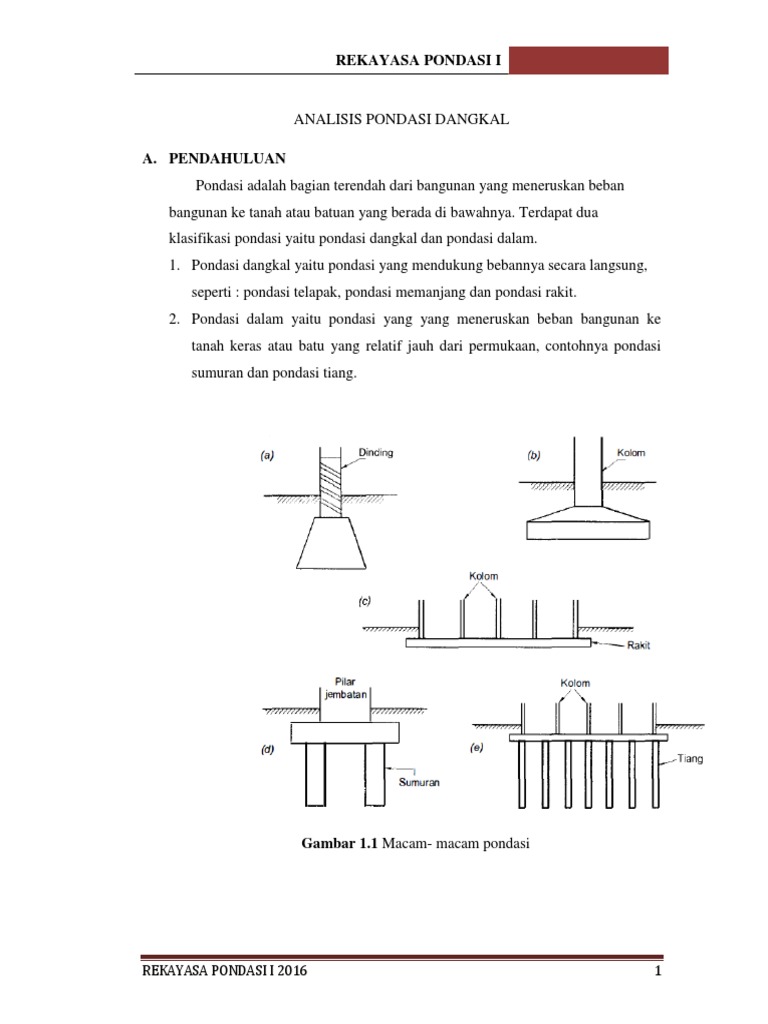 Gambar 1.1 Macam- macam pondasi