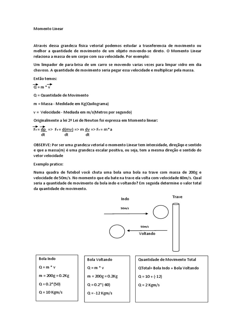 melhor a quantidade de movimento de um objeto movendo-se direto. O Momento Linear