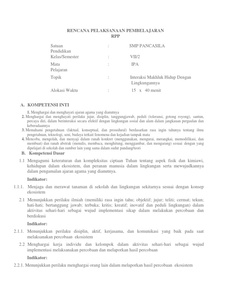 RPP Interaksi Makhluk Hidup dan Lingkungan